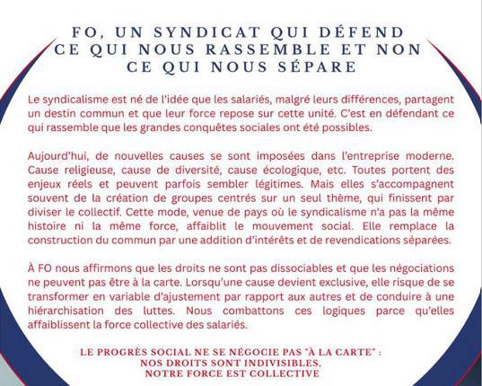 À FO, nous restons convaincus que le progrès social n'est pas dissociable. Nos droits sont indivisibles car notre force est, avant tout, collective.