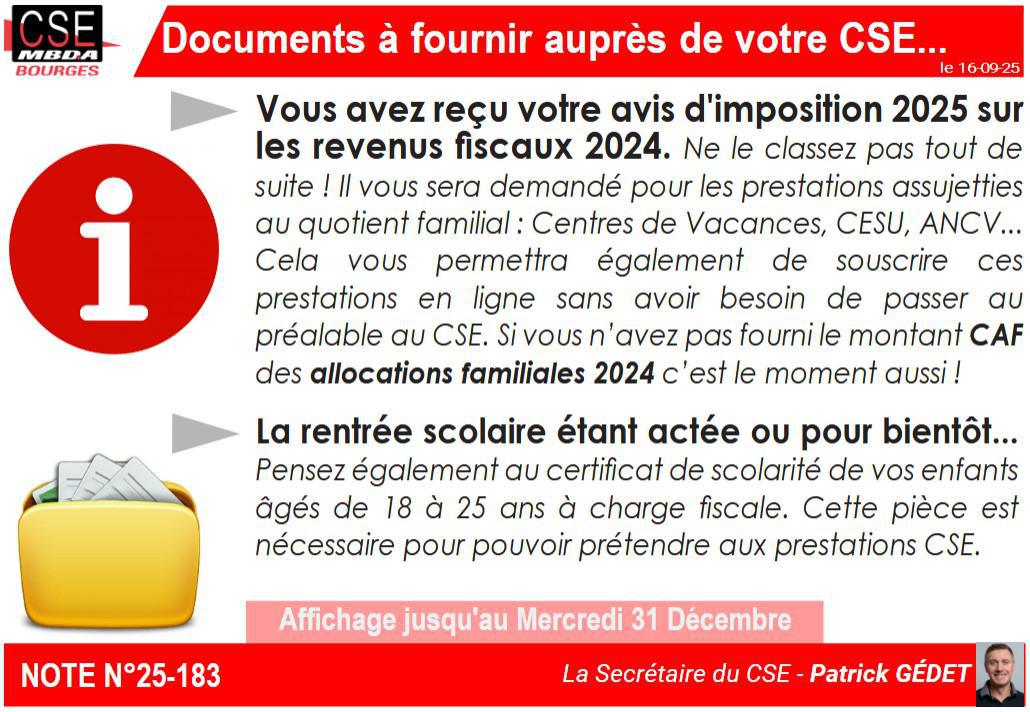 Info CSE - Documents à fournir au CSE